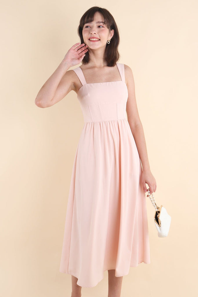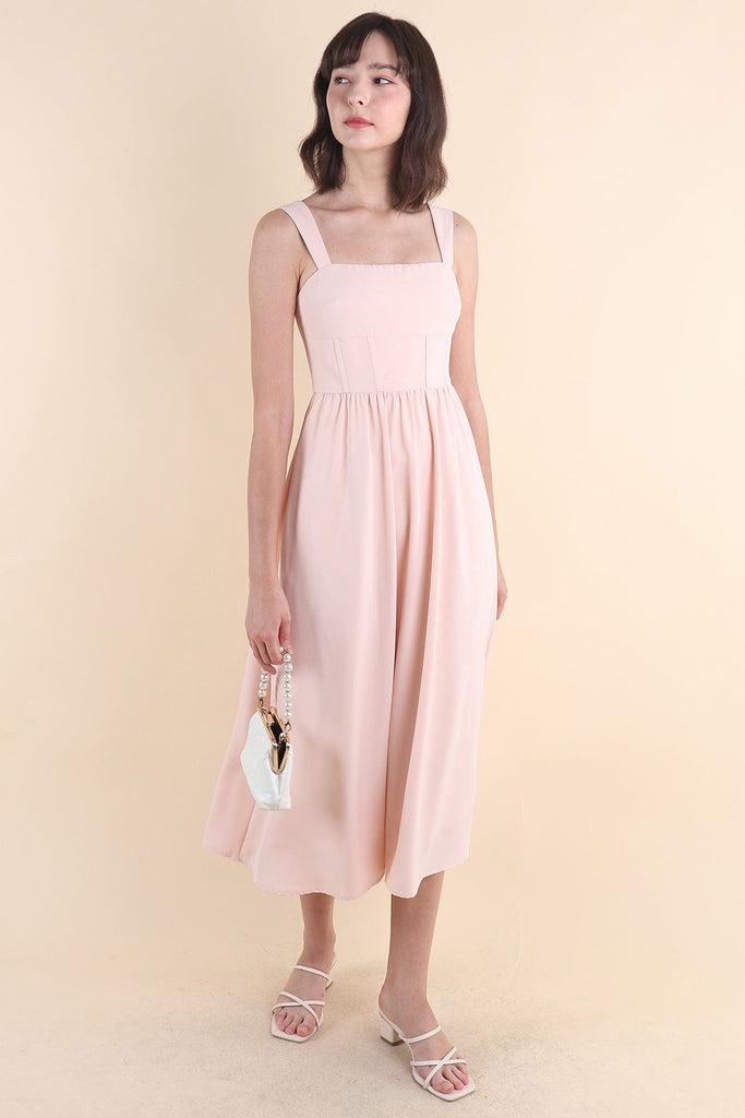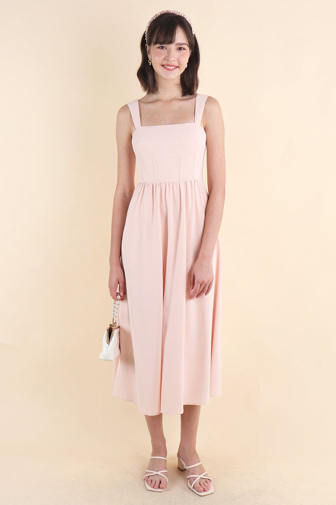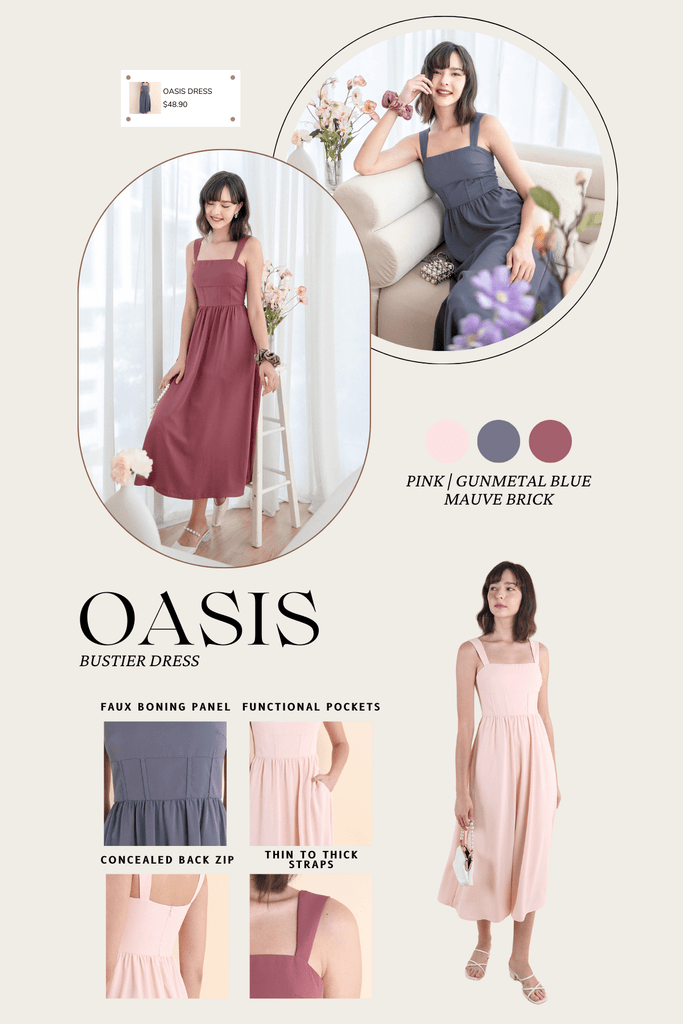 Picture a quintessential cottage-core midi dress that seamlessly blends rustic charm with timeless elegance. Oasis boasts slightly wide shoulder straps and boning details, providing both structure and support while ensuring a flattering fit! Its corset detail cinches the waist gracefully, lending a hint of femininity to the ensemble ౨ৎ