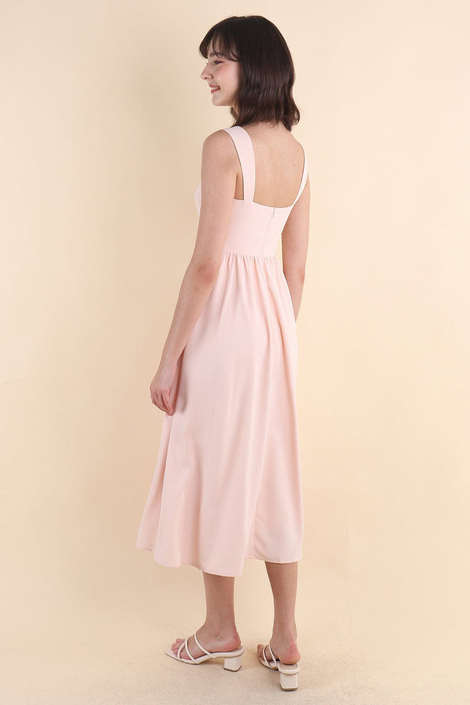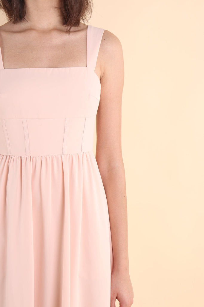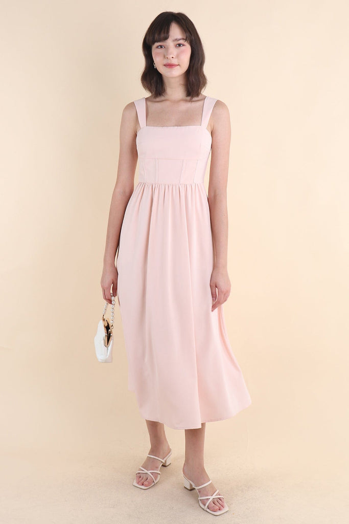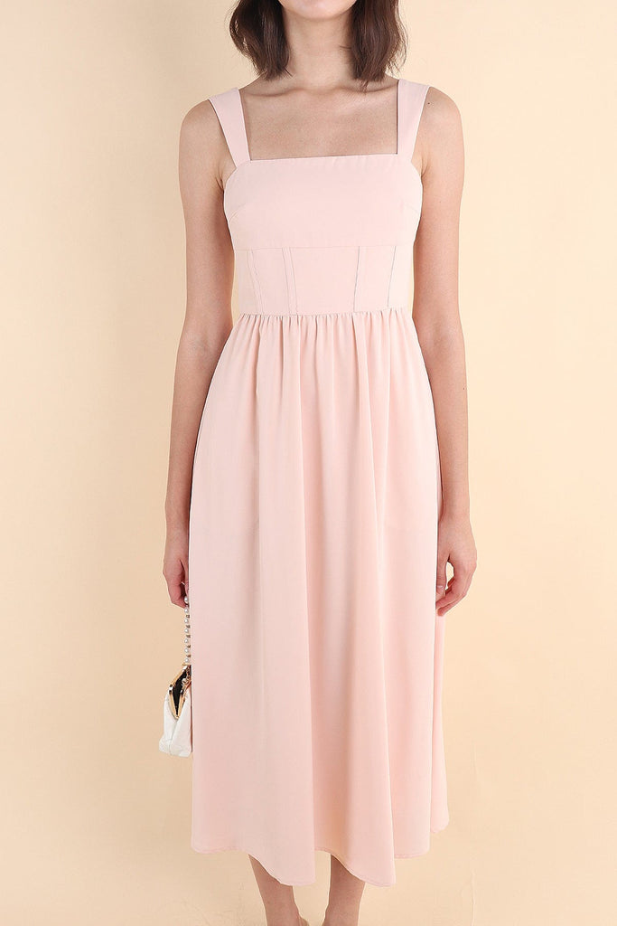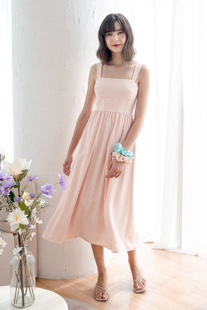 Picture a quintessential cottage-core midi dress that seamlessly blends rustic charm with timeless elegance. Oasis boasts slightly wide shoulder straps and boning details, providing both structure and support while ensuring a flattering fit! Its corset detail cinches the waist gracefully, lending a hint of femininity to the ensemble ౨ৎ