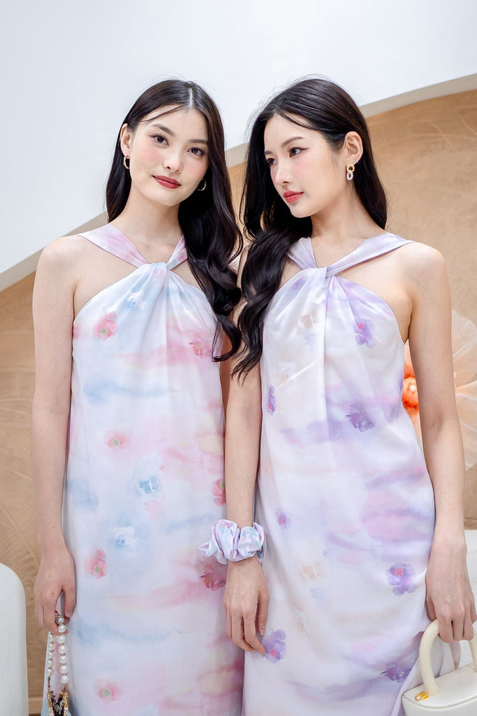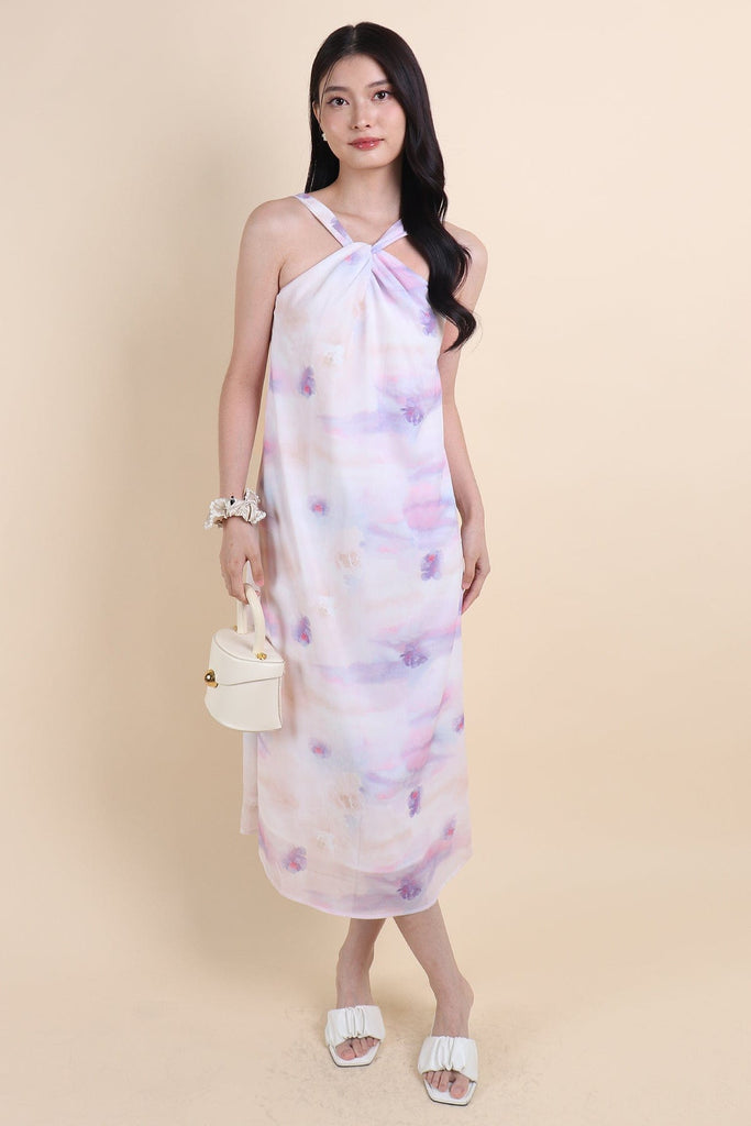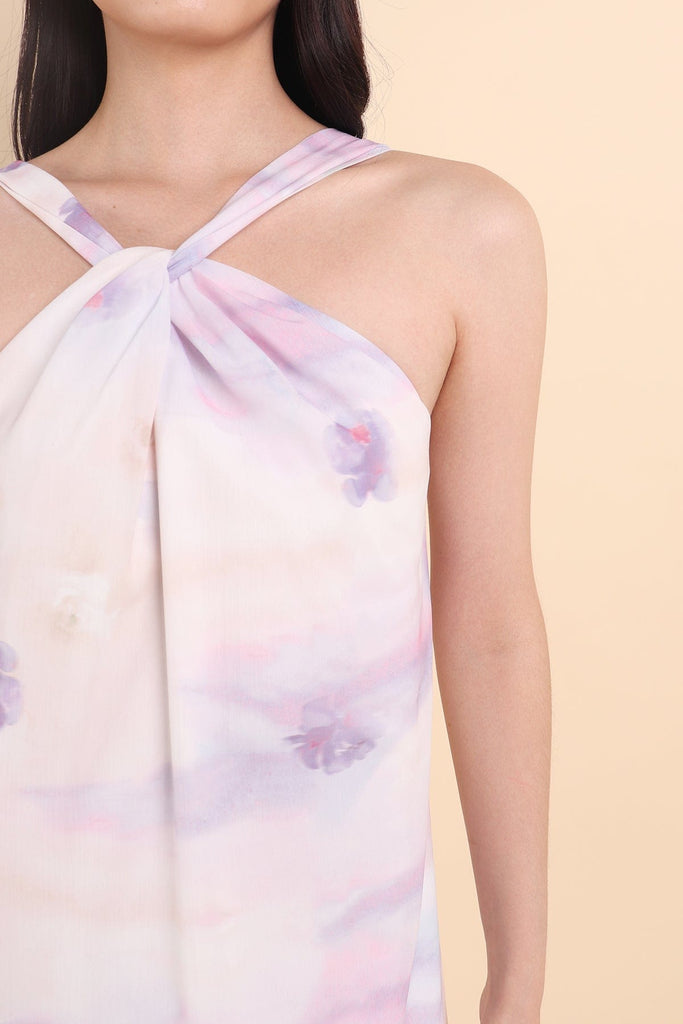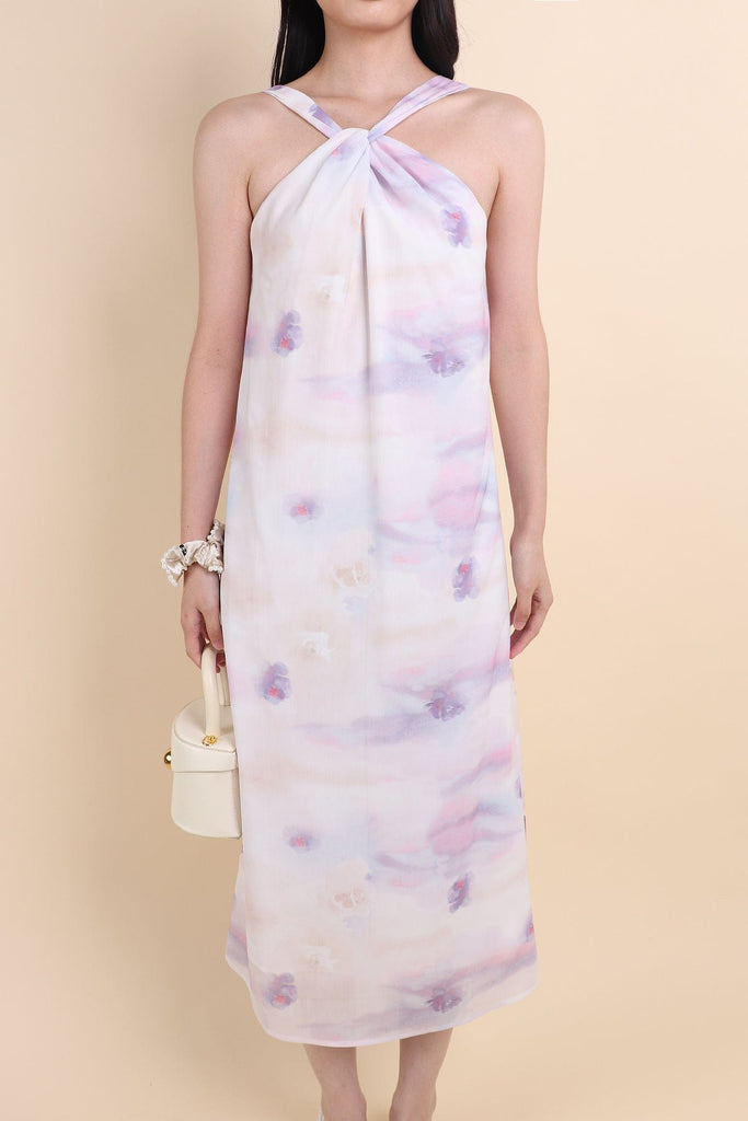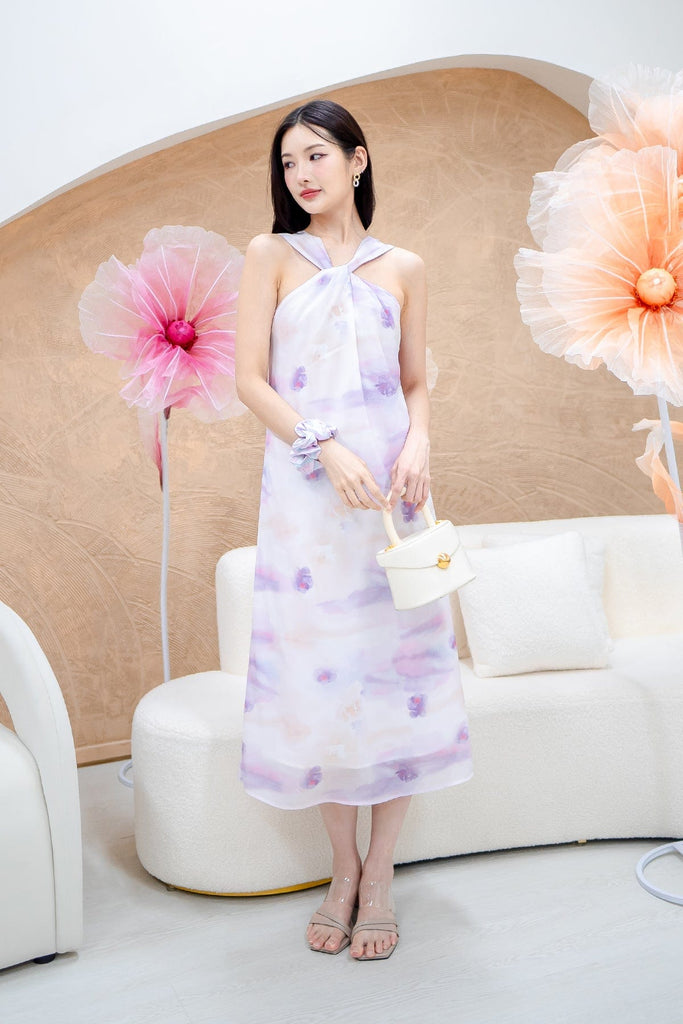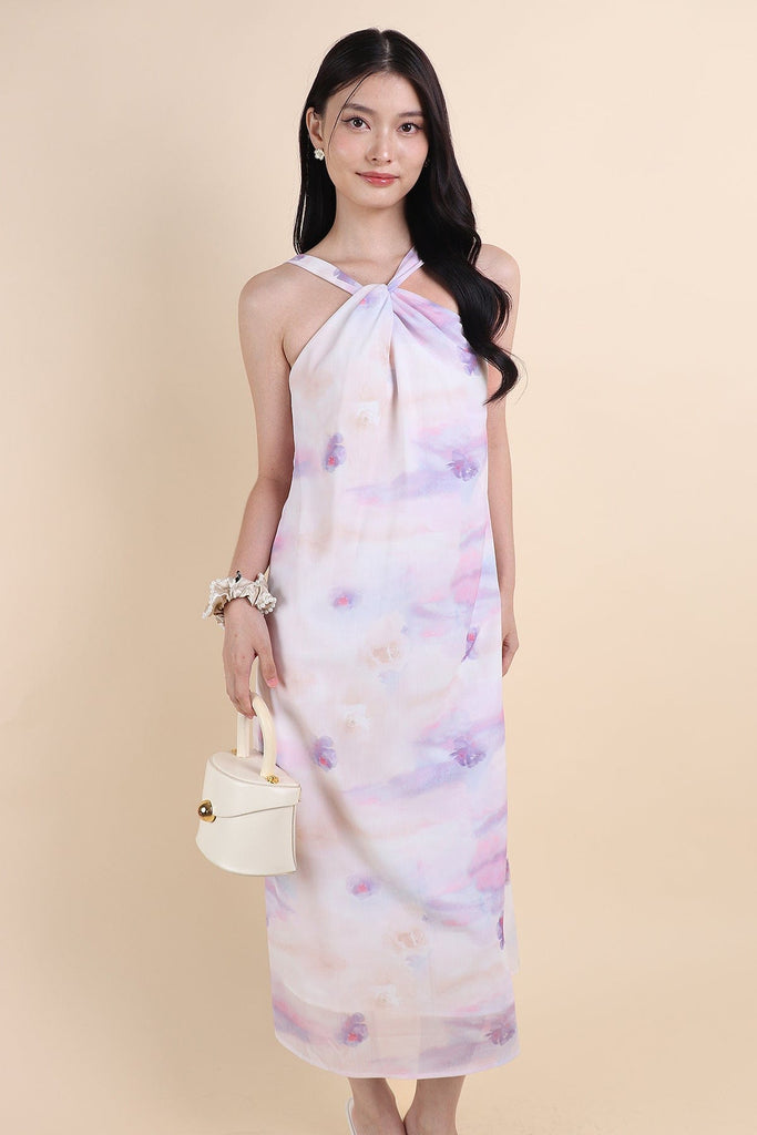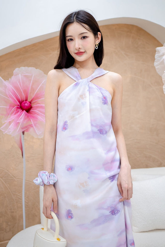 ODILIA WATERFLORAL HALTER MAXI DRESS IN LILAC