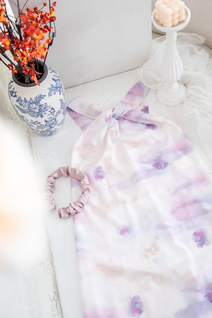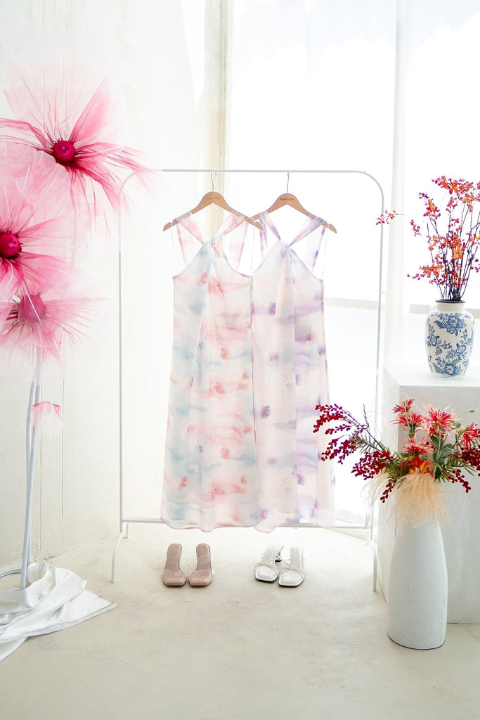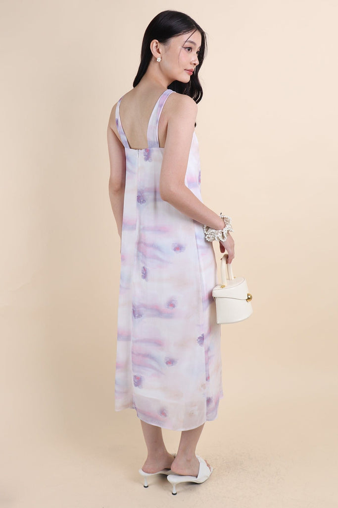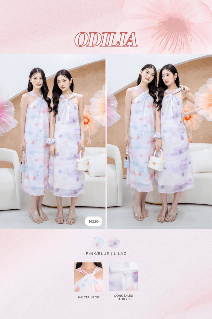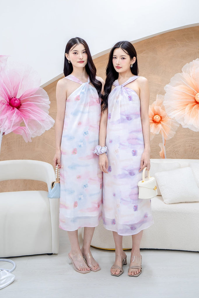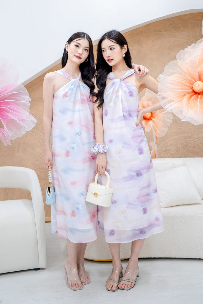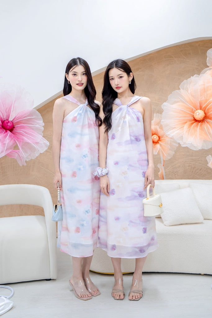 ODILIA WATERFLORAL HALTER MAXI DRESS IN LILAC