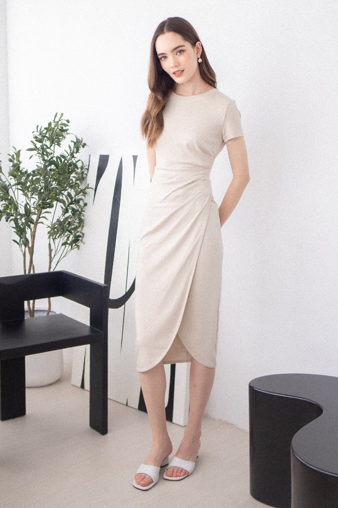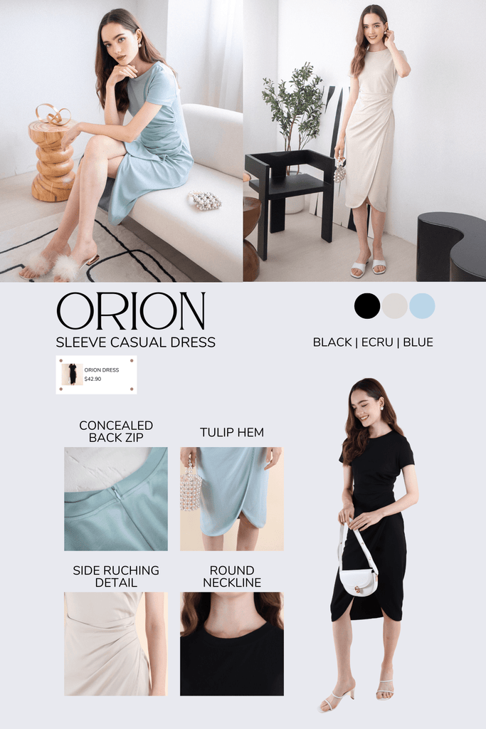 Orion is a wardrobe staple you will reach out for every other day! Comfortable to be in, flattering, and hugs you in the right places - this midi dress comes with side ruching details, a tulip hem and concealed back zip for easy wearing! Elevate the look with your favourite accessories!