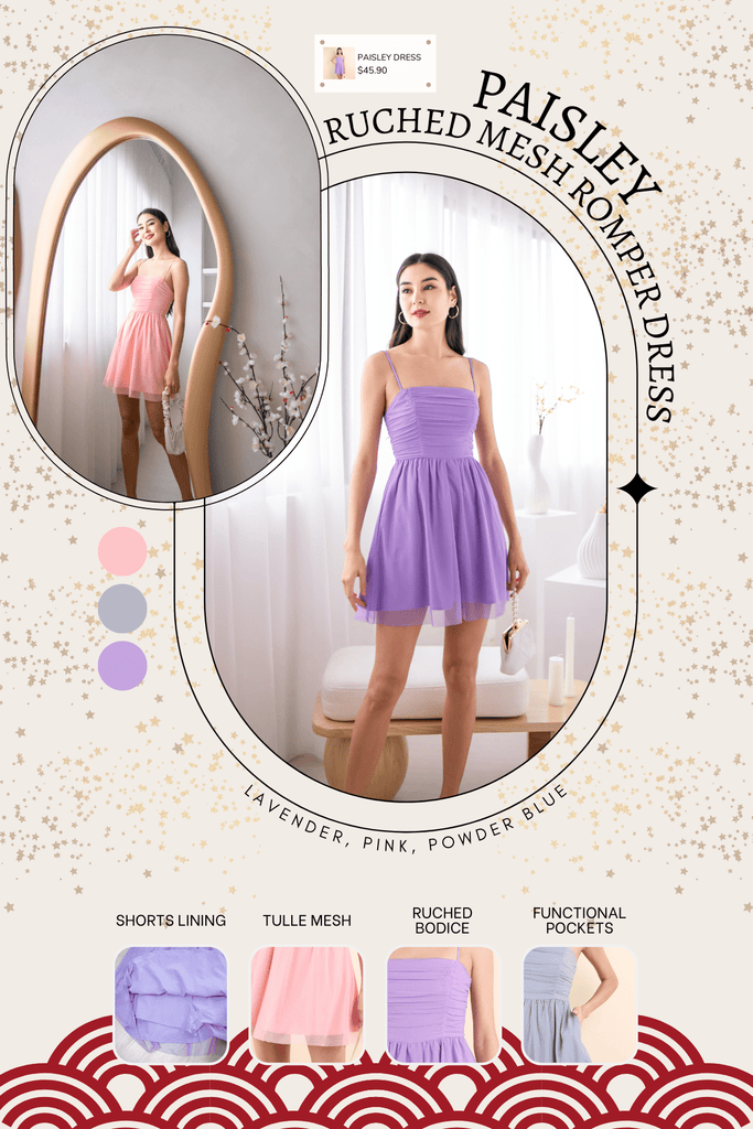 This romper dress is made of a tulle mesh material which makes it so different from the rest. Paisley is sure to be a stylish welcome addition to your wardrobe! This gorgeous piece comes in three playful, sweet and vibrant colours. Choose your favourite colour to match your style!