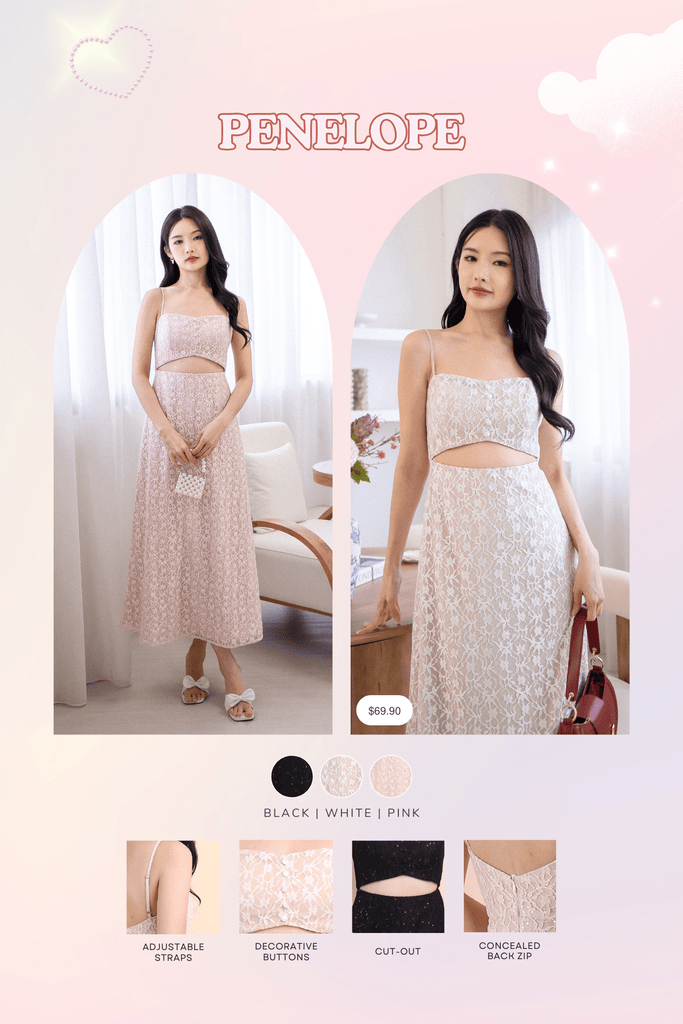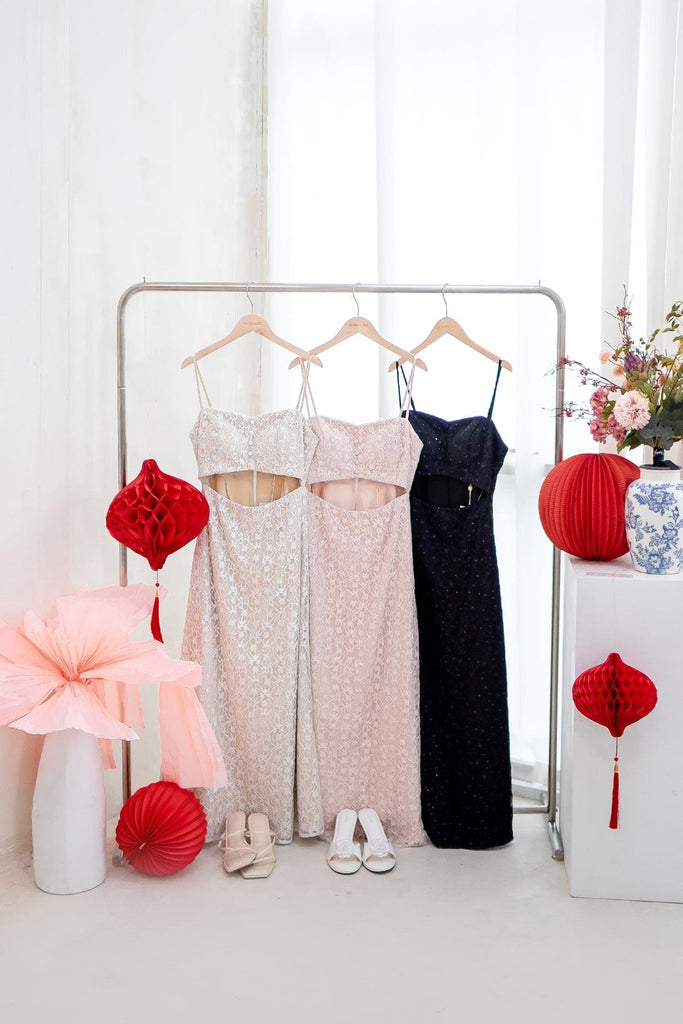 The perfect blend of elegance and allure, featuring intricate lace detailing that adds a touch of glamour. With its daring cut-out accents and flowing silhouette, this dress exudes a festive, high-fashion vibe, perfect for a night of celebration. Penelope dress guarantees you’ll sparkle and shine!