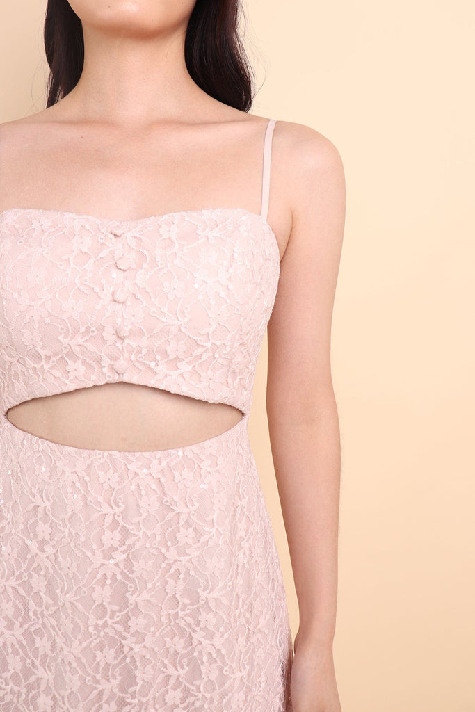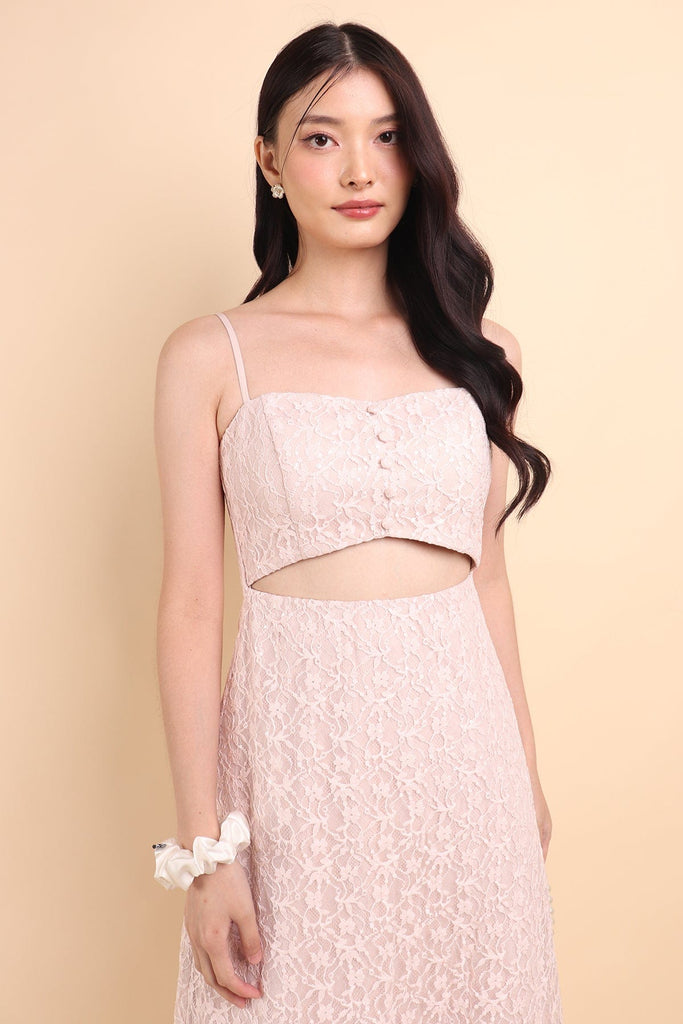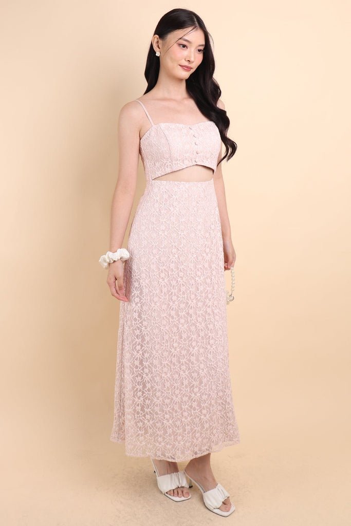PENELOPE LACE CUT-OUT MAXI DRESS IN PINK
