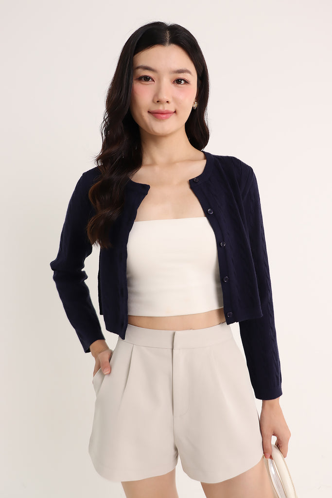 PENNY EMBOSSED KNIT CARDIGAN IN NAVY