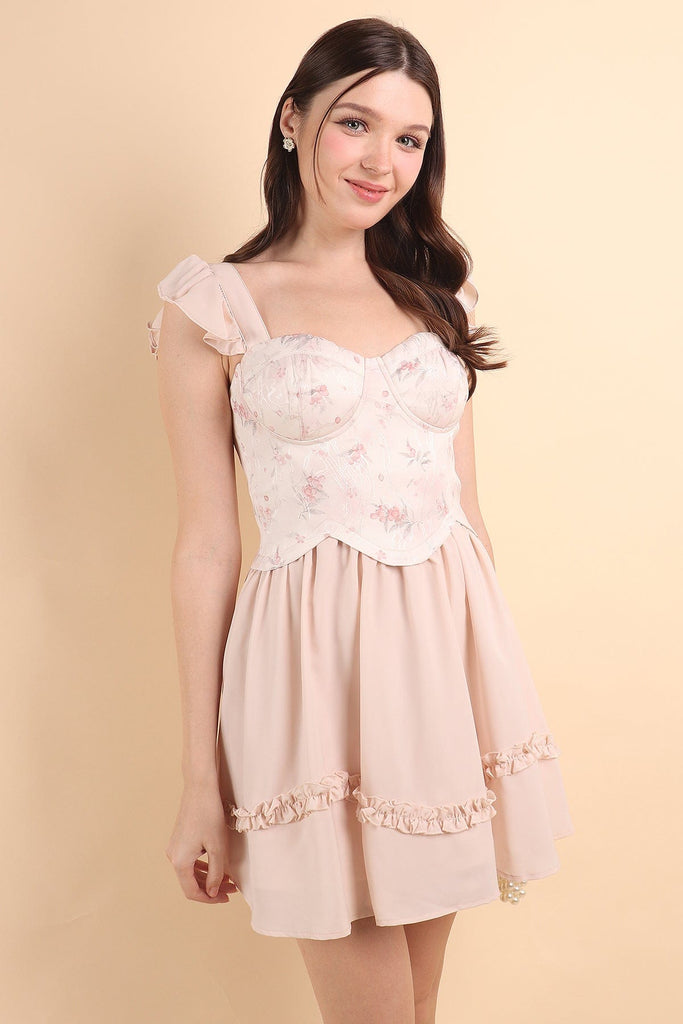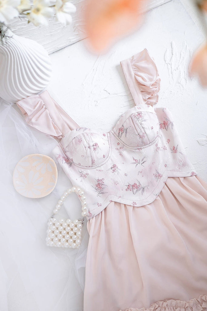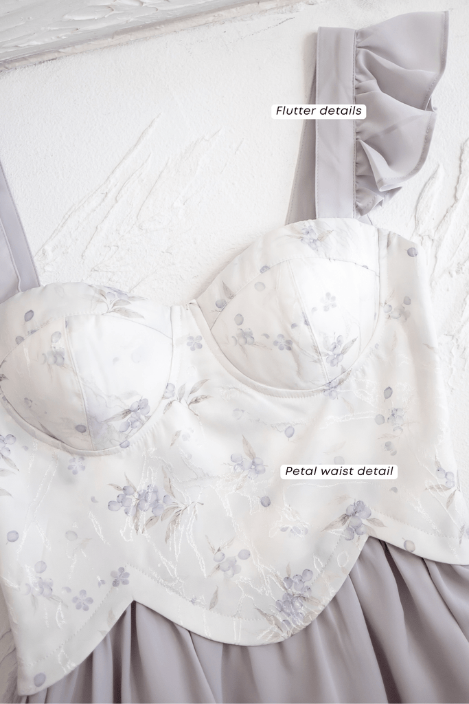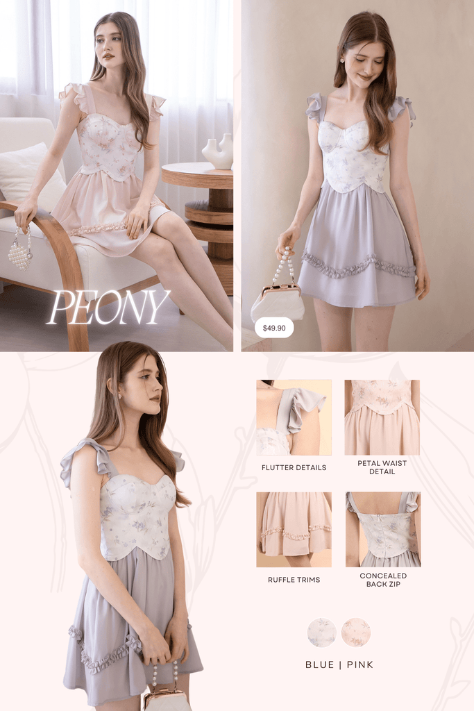 Peony is an enchanting blend of elegance and playfulness, featuring soft, delicate ruffles that add a touch of whimsy. Its padded design provides a flattering, structured fit, creating a beautiful silhouette that moves gracefully. With its charming floral details, this dress is perfect for any occasion where you want to feel both pretty and confident..₊˚⊹♡