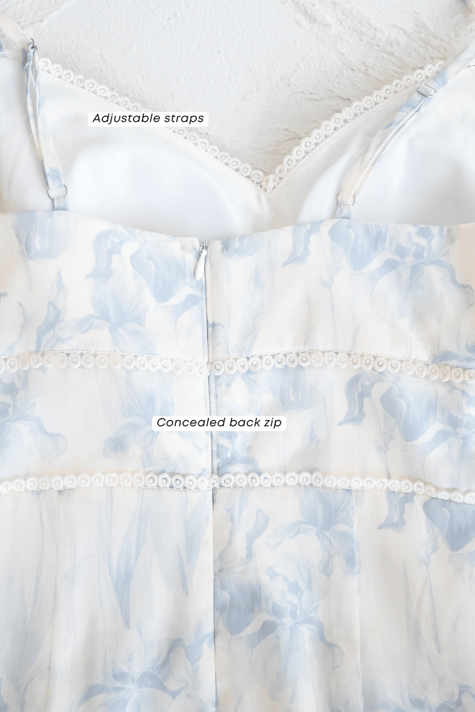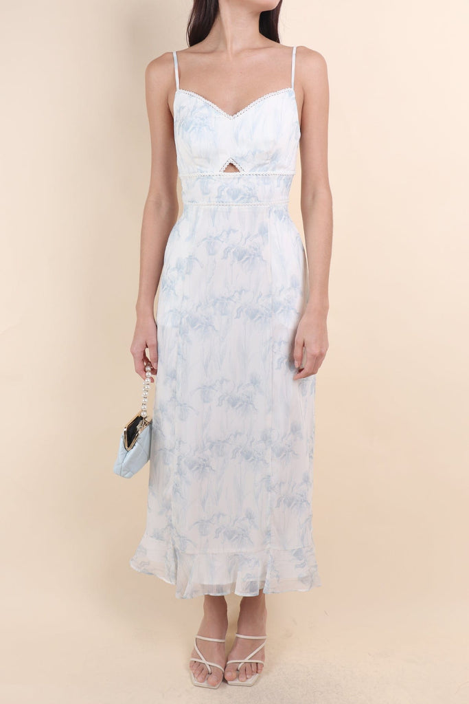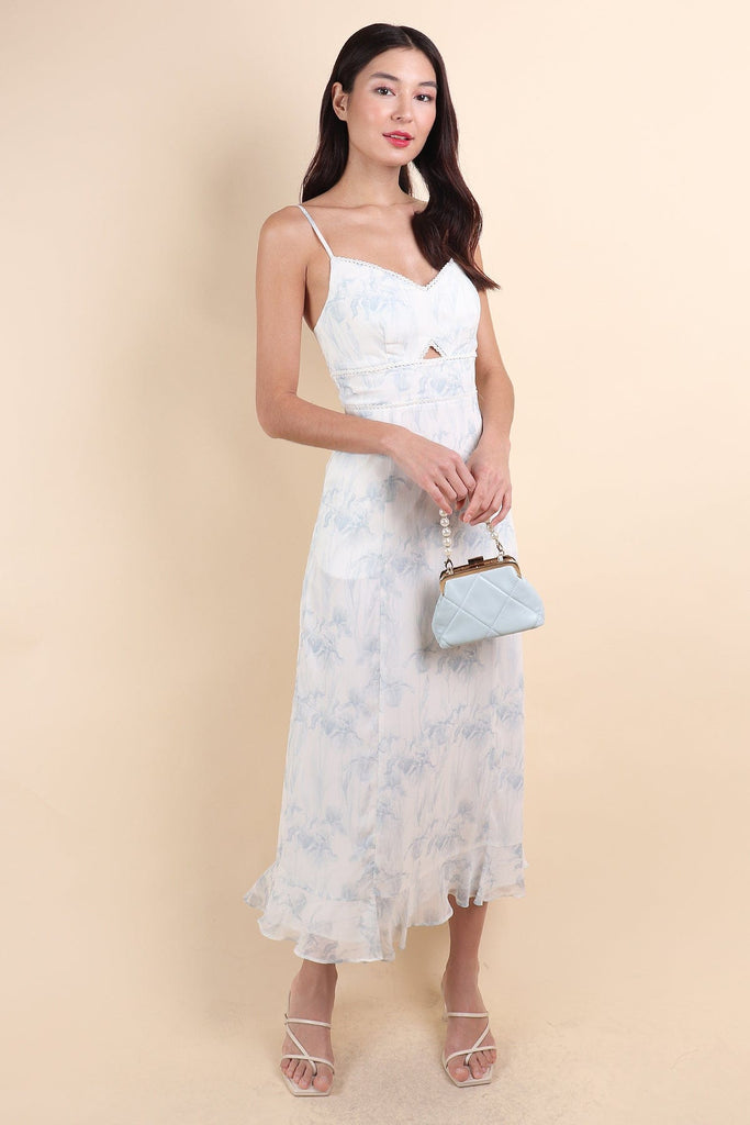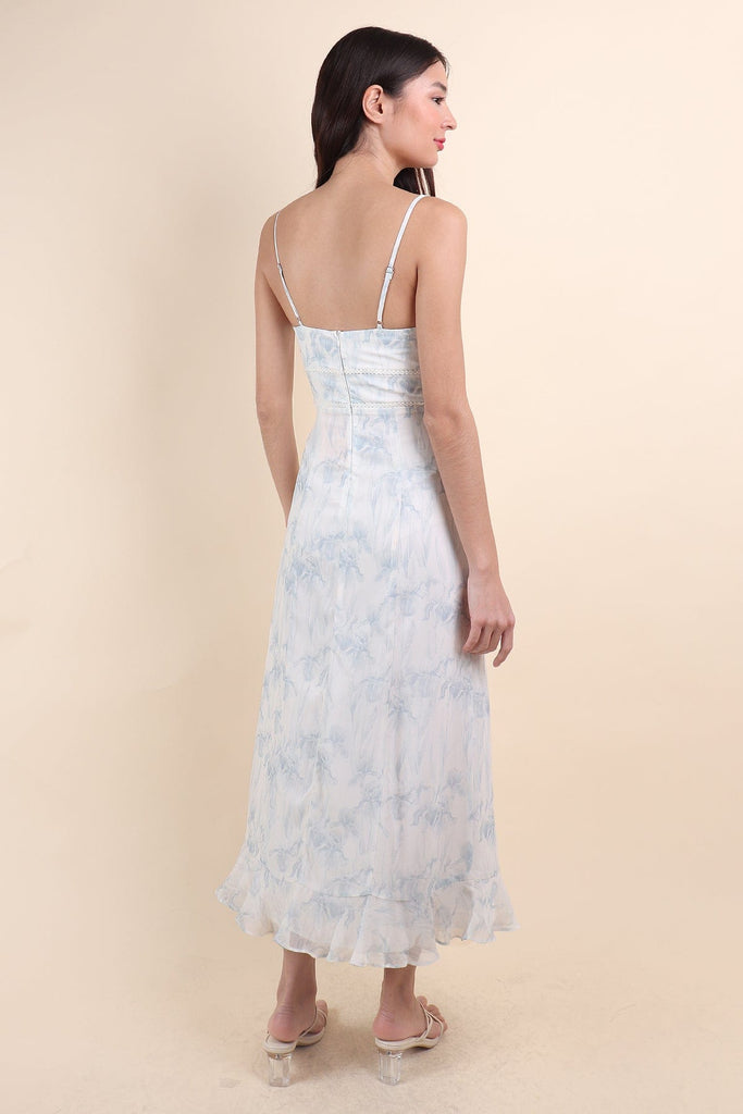 POSHBURY WATERFLORAL PADDED MAXI DRESS IN BLUE
