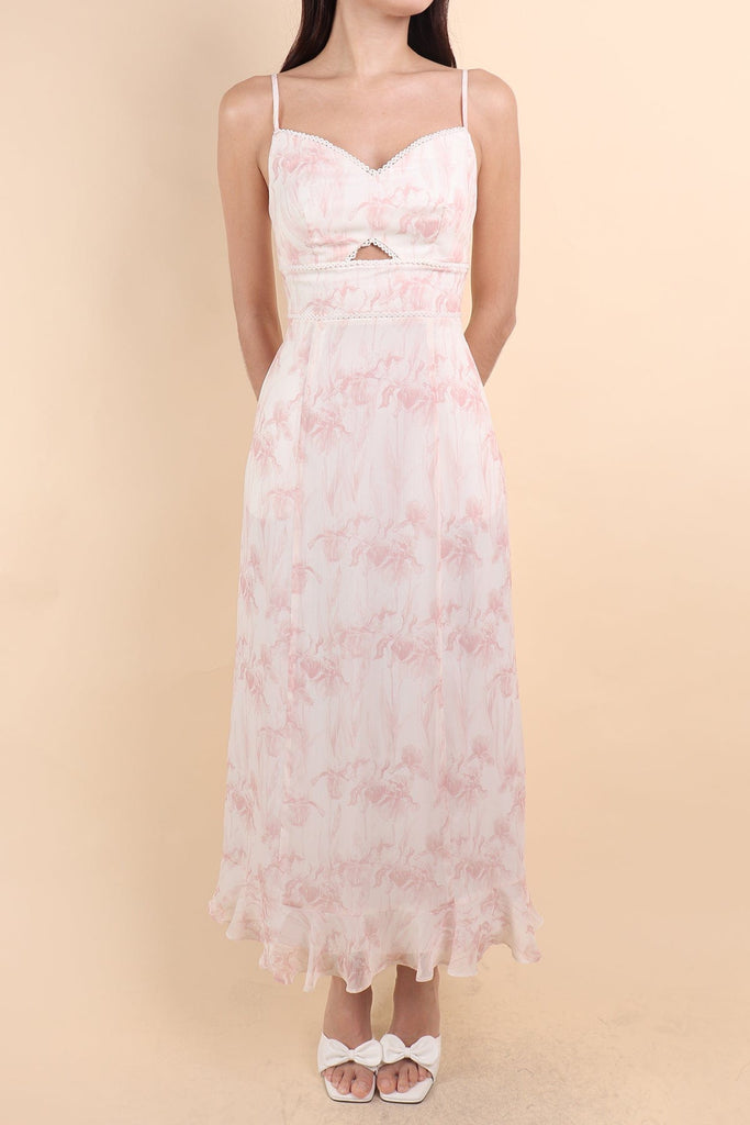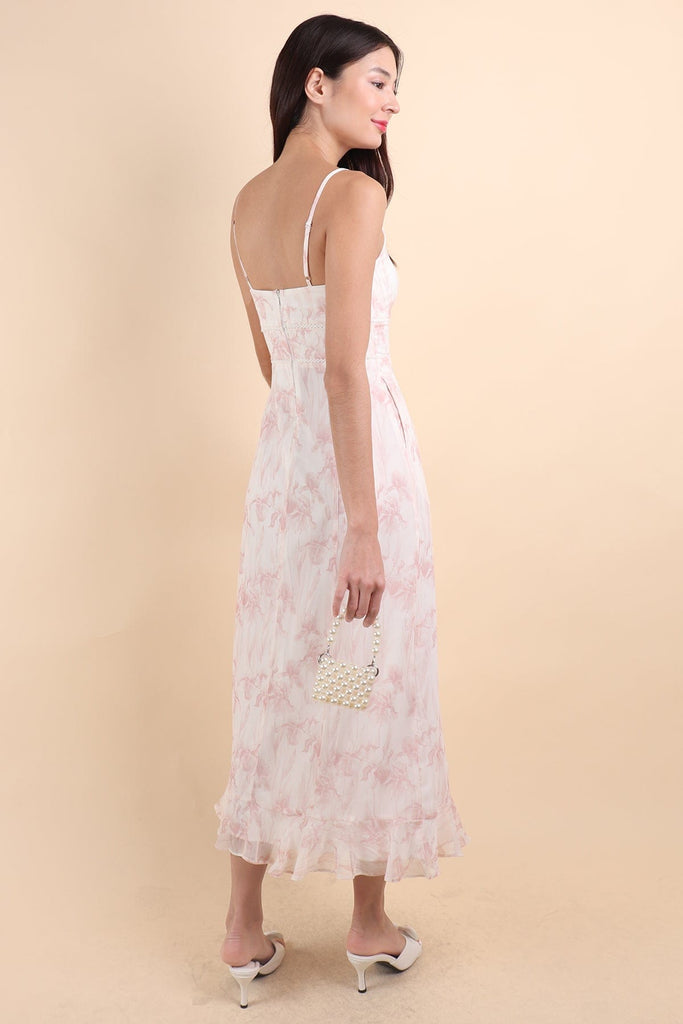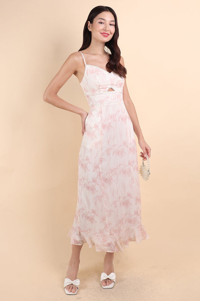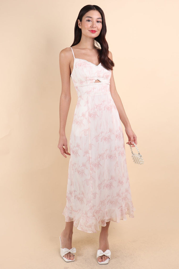 POSHBURY WATERFLORAL PADDED MAXI DRESS IN PINK
