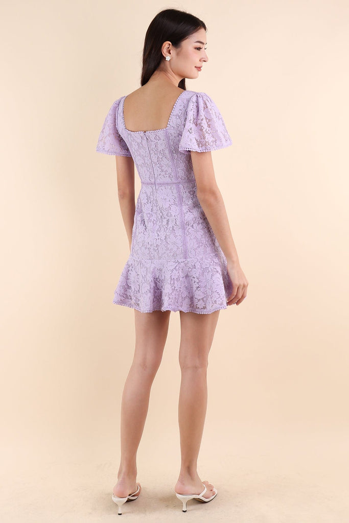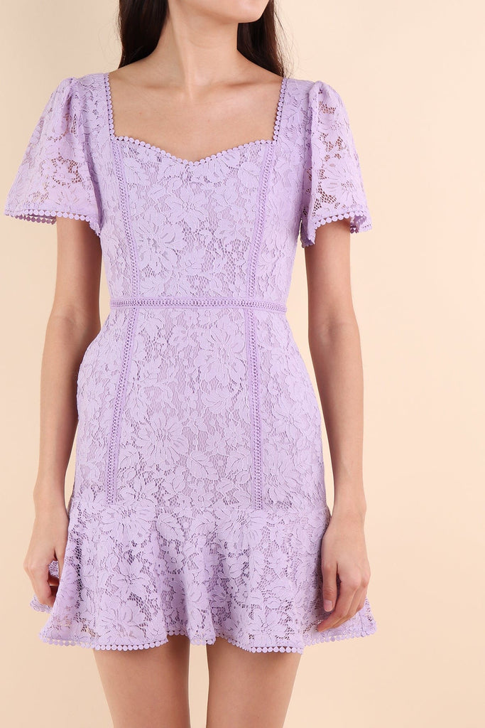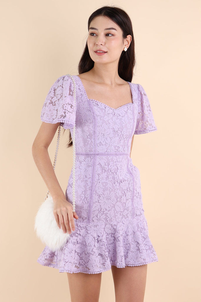 BONJOUR SLEEVE LACE DRESS IN LILAC