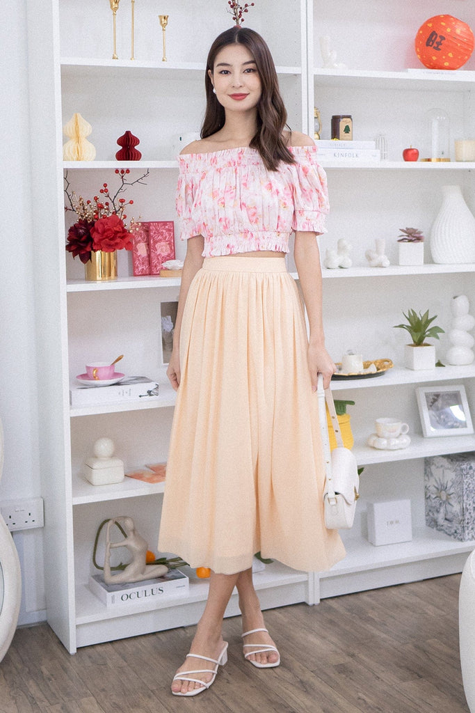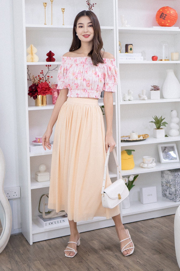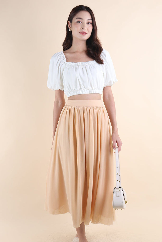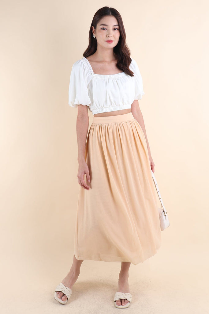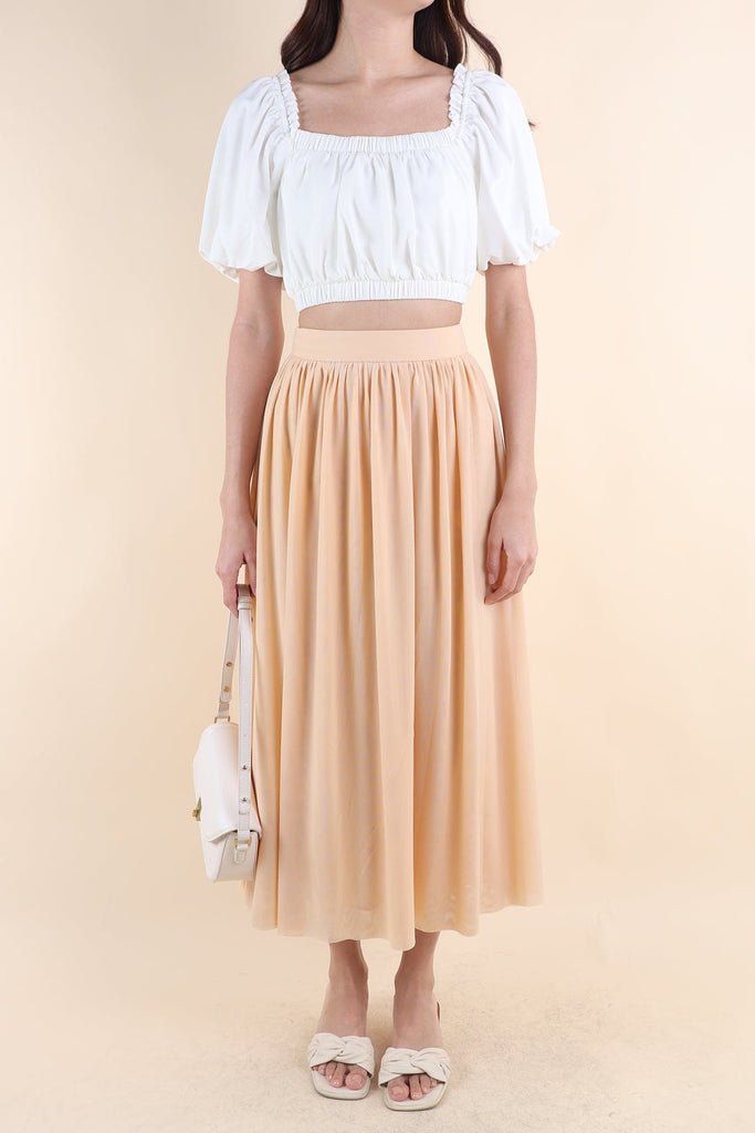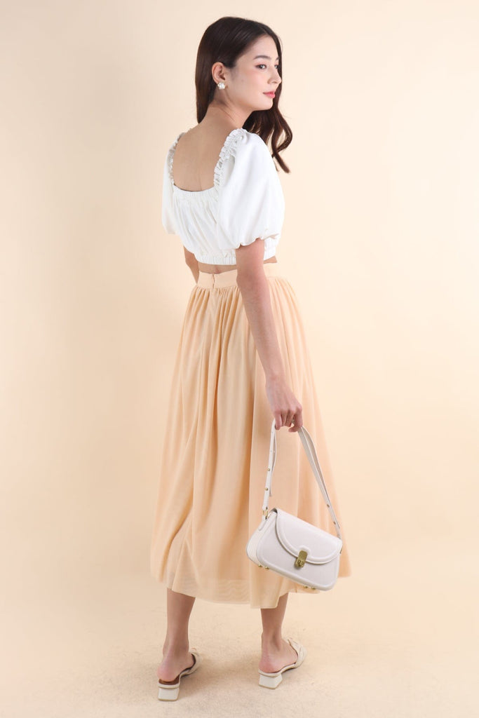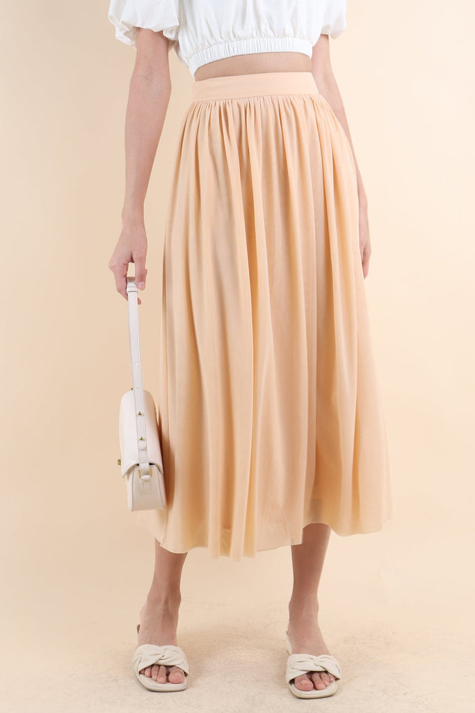REAGAN MESH MIDAXI SKIRT IN BUTTERCREAM
