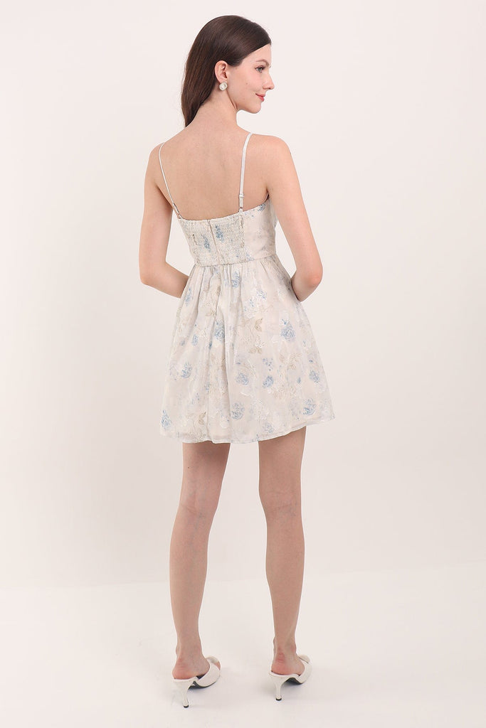 ROSEA GARDEN PADDED DRESS IN BLUE