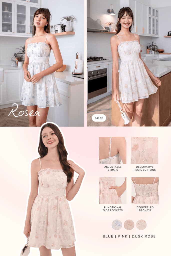 Rosea Garden Padded Dress features a romantic floral print inspired by blooming garden scenes, paired with soft built-in padding for a flattering, structured fit. Its feminine silhouette and delicate details make it ideal for both casual daytime wear and special occasions. Light and airy, it captures the essence of effortless elegance with a touch of vintage charm.