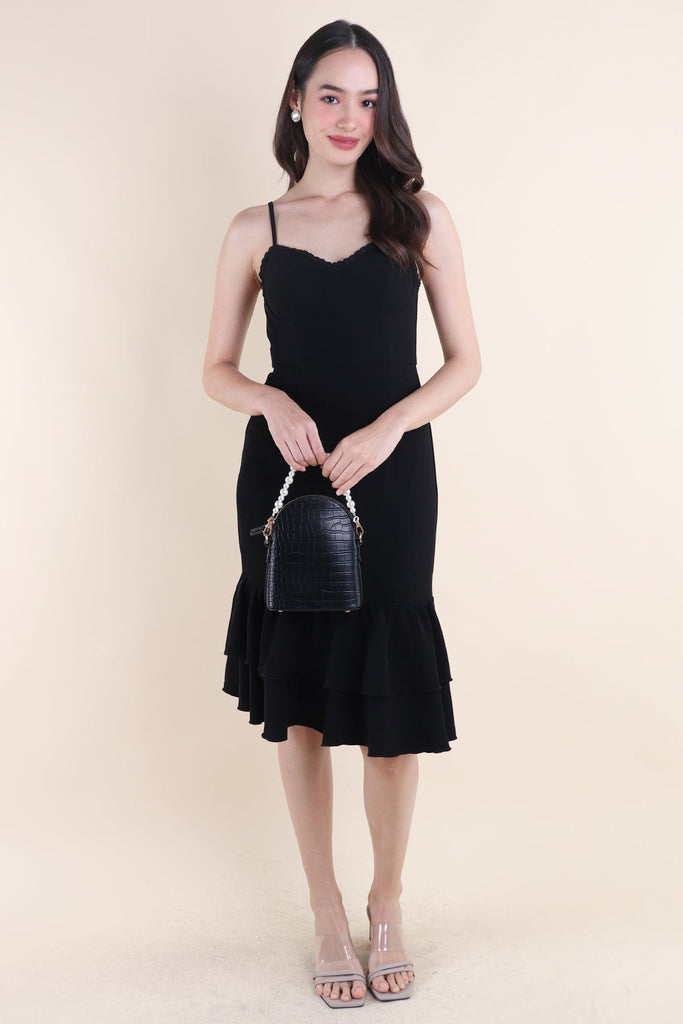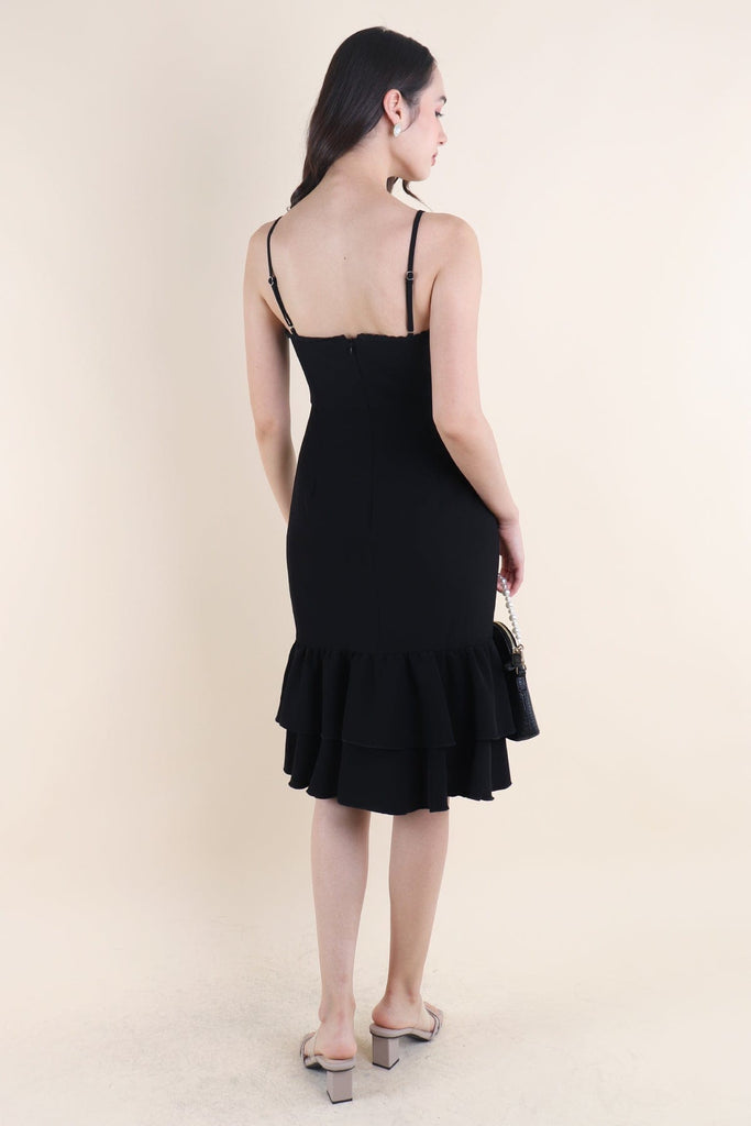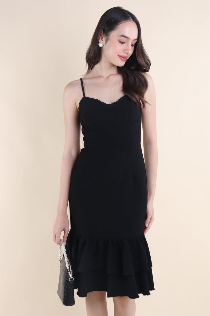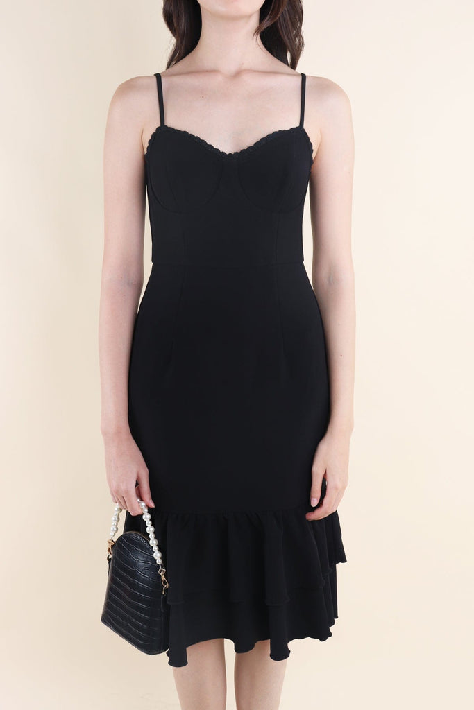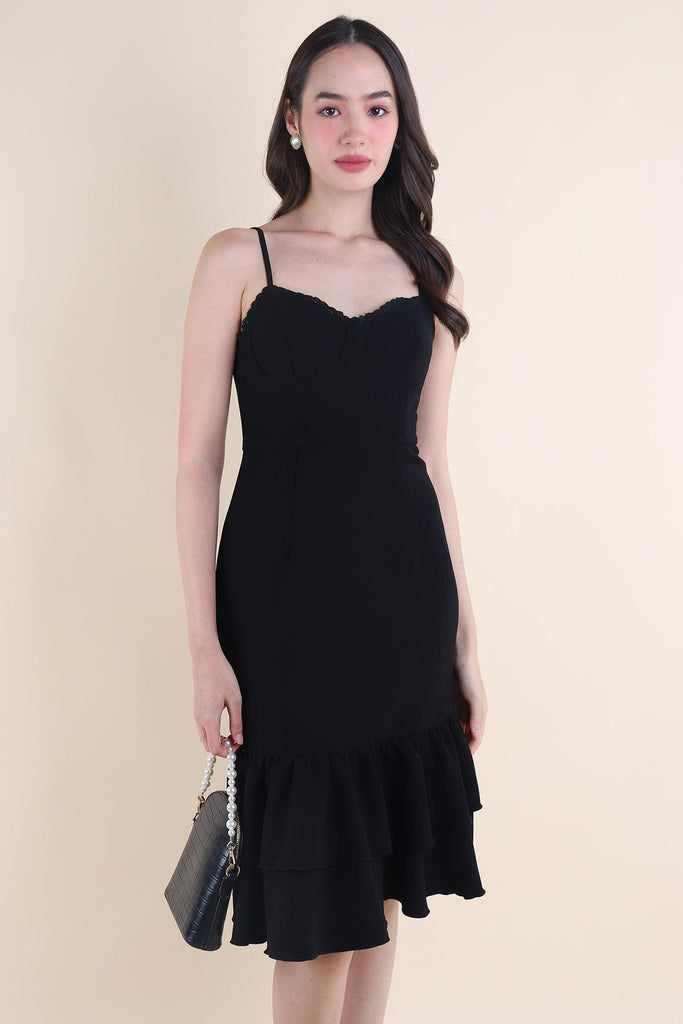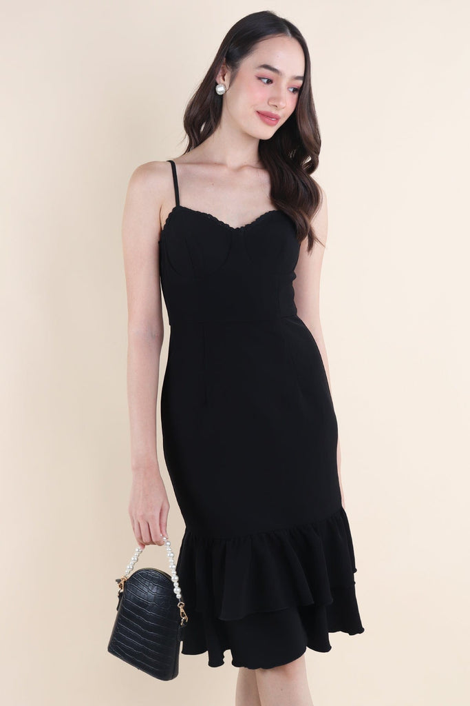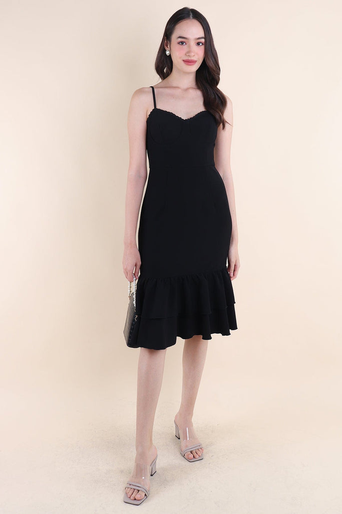RYLIA BUSTIER RUFFLES DRESS IN BLACK