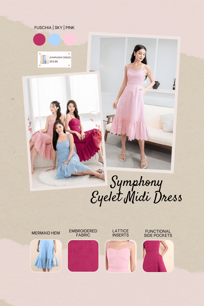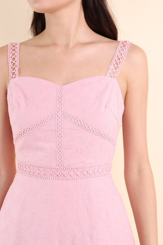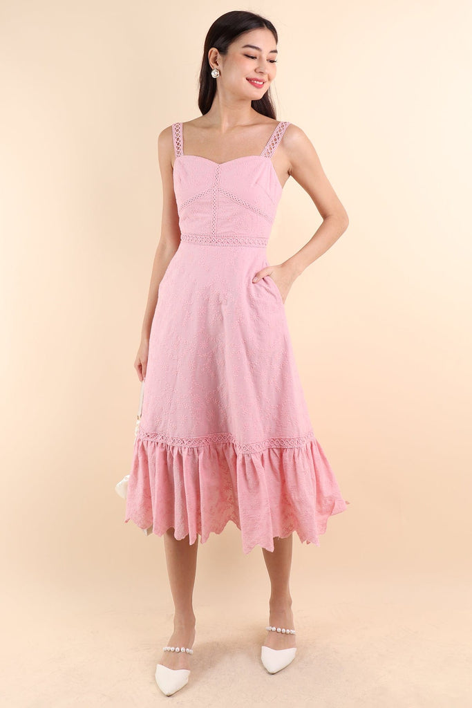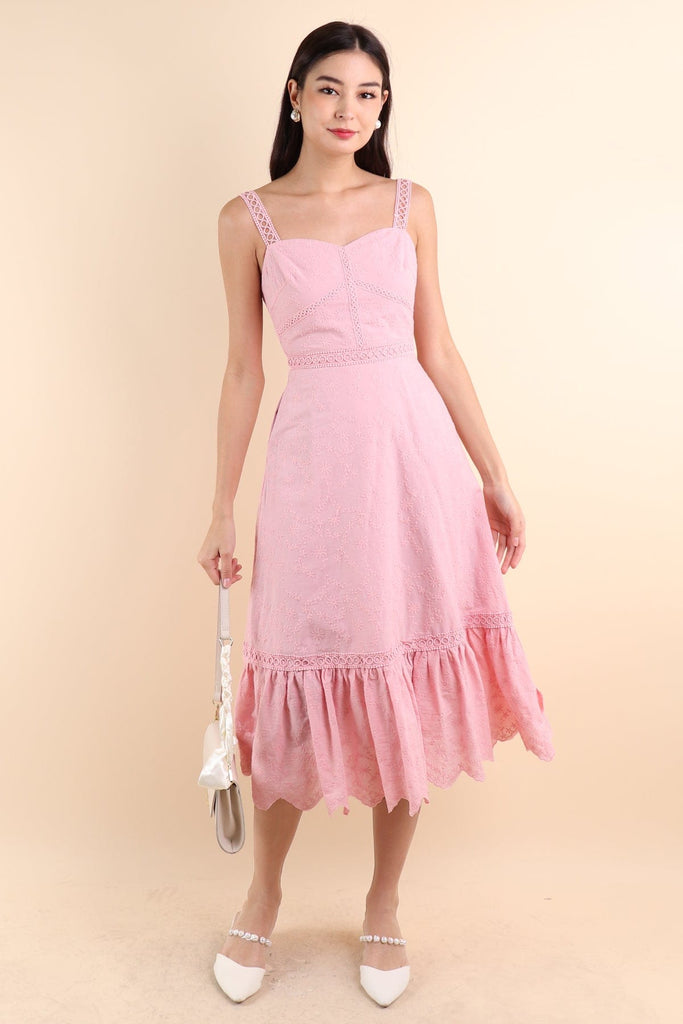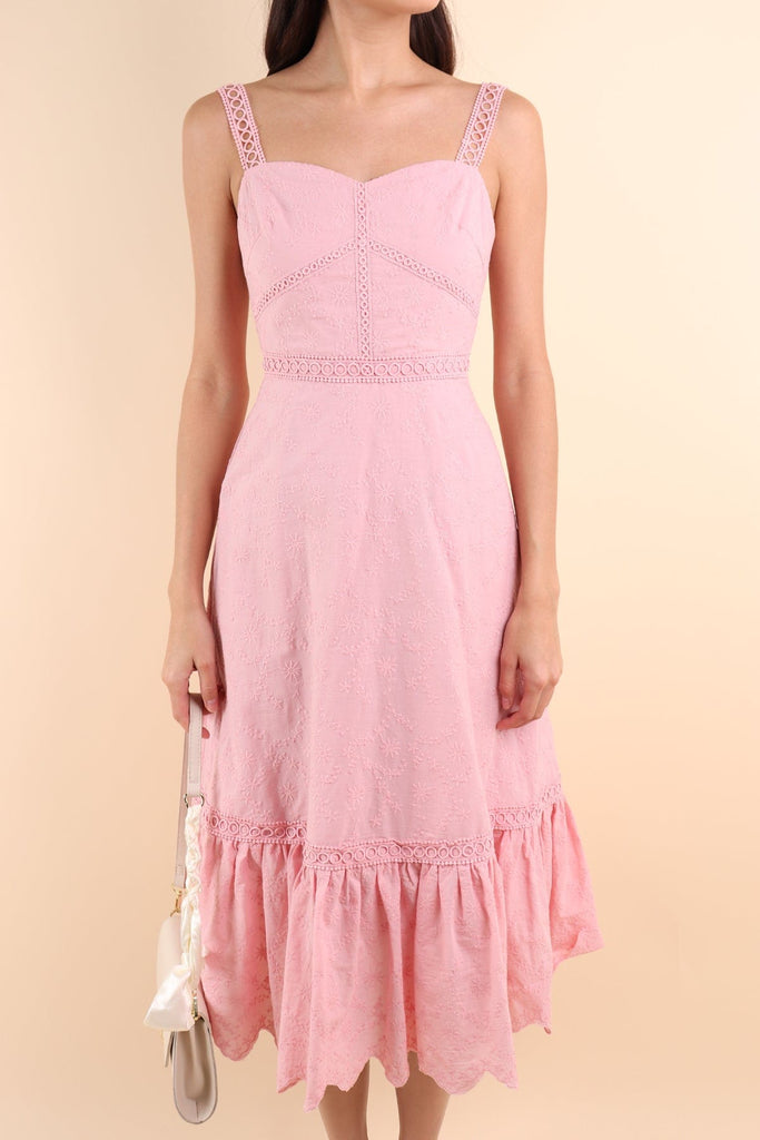 SYMPHONY EYELET MIDI DRESS IN PINK